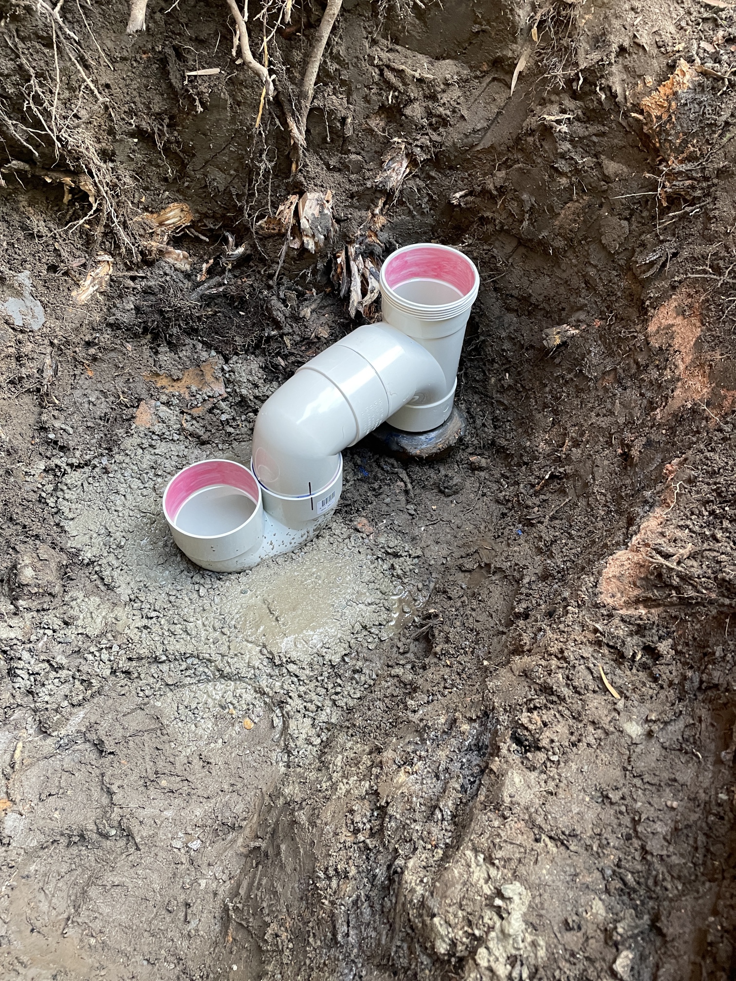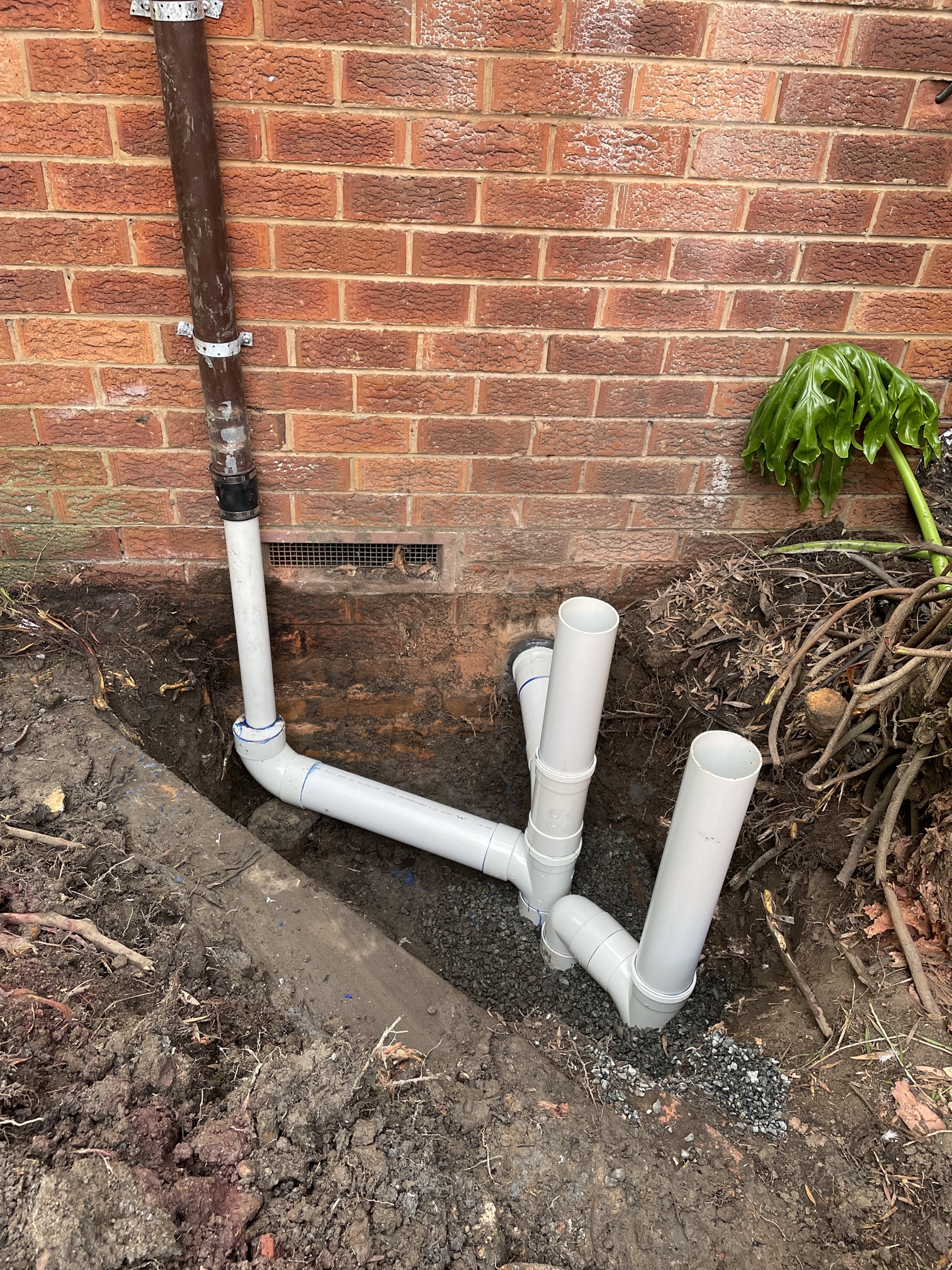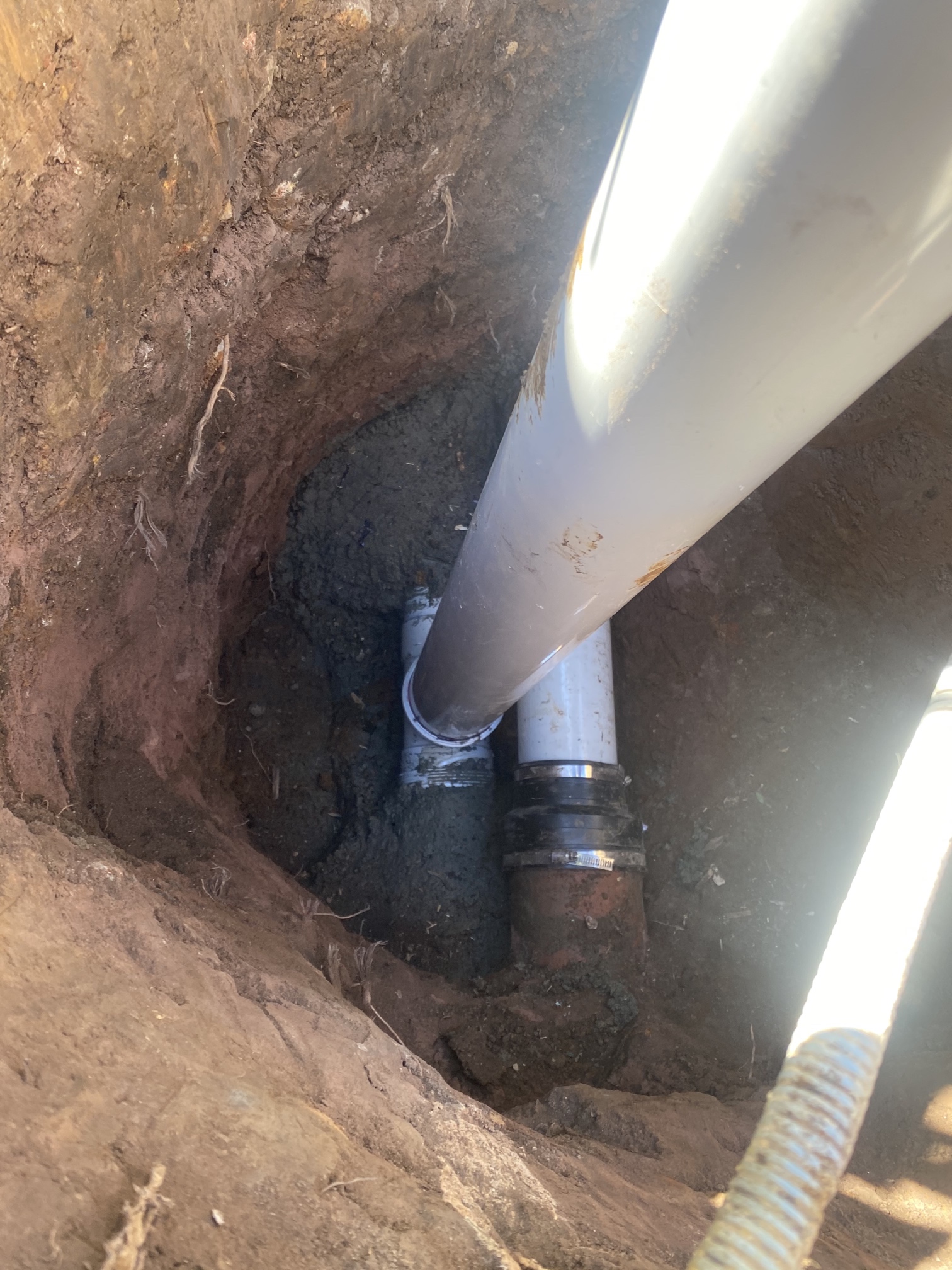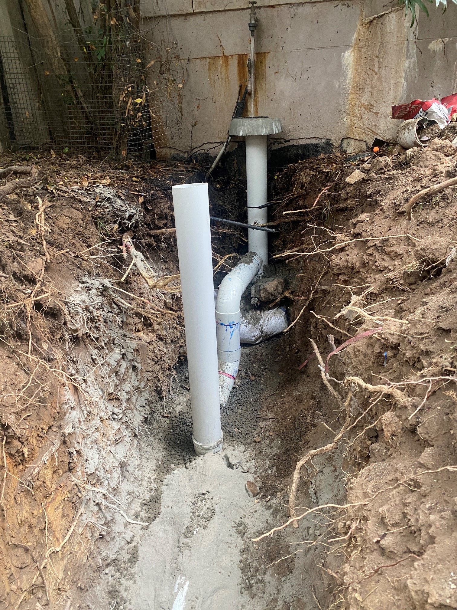 As a result of the dislodgement, most likely caused by the weight of the wall pushing down on the pipe, the sewer pipe is back falling and bowed which means relining is not a viable option and the pipe will need to be replaced. Works completed to resolve the problem - With the assistance of an excavator machine we proposed to excavate up to 1.7 metres deep and expose the sewer junction on the boundary trap shaft in the backyard of the unit. New trench was excavated from the boundary trap shaft junction to the rear wall of the unit. Defective sewer pipe was removed and a new junction cut in on the boundary trap shaft at a lower point to achieve a greater grade of fall. New PVC sewer pipe was run from the junction through the wall penetration and reconnected to the horizontal sewer service within the basement. On the completion of the works - Testing and commissioning was conducted on support pipe with blue metal aggregate as per Australian plumbing standards and area of works backfilled