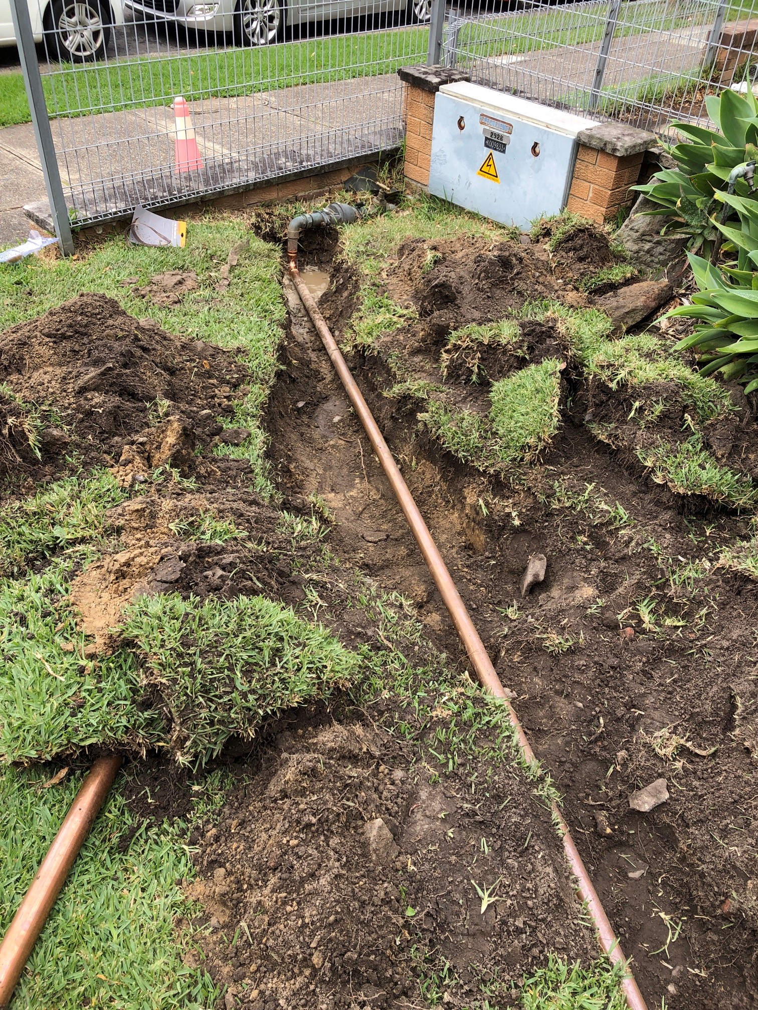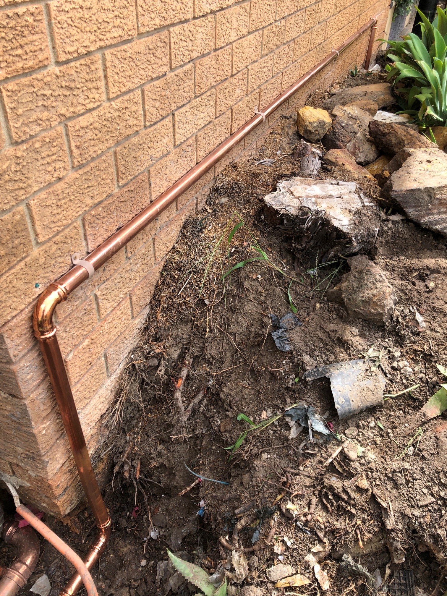 After having trouble previously connecting the new fittings to the old lines which have continued to leak currently, our SPS plumbing technician encouraged that the following works will need to be completed to resolve this issue permanently. Works completed to resolve the problem - Dig up the affected area to expose water service at the front of the building that runs on the side of the building hard up to the existing brick wall and redirect the water service away from the wall combined with the replacement of 10 meters of 40mm copper. On the completion of the works - The area of the works was backfilled, garden relandscaped and all excess waste from conducting all plumbing works were disposed of.