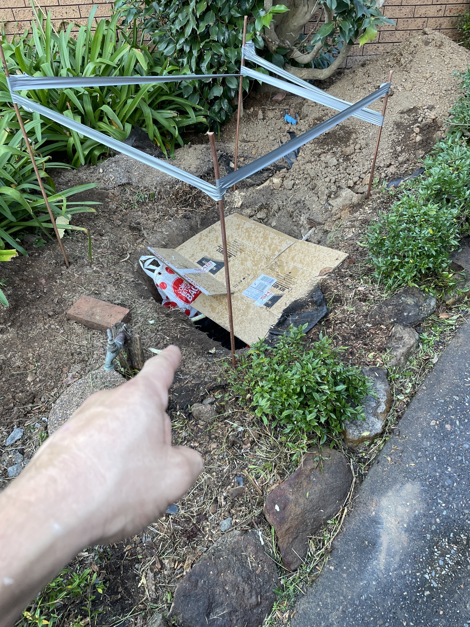 remove the obstructive roots interfering with the pipe and diligently dug up the existing ground in front of property to expose and disconnect the existing sewer. Pipe reline took place of approxmately 5 metres of the defected sewer. In addition, an inspection point was installed and inspection opening raised. On completion of the works, the hole was backfilled and site cleaned.